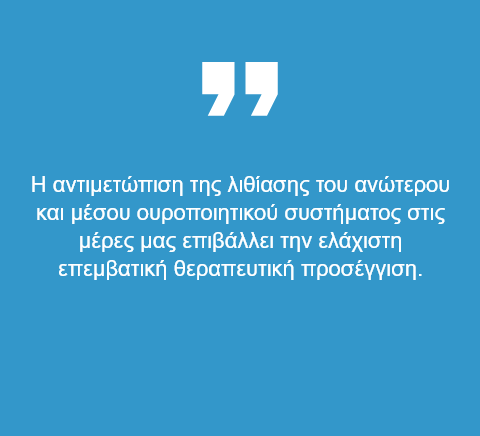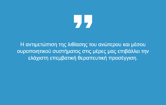 Η αντιμετώπιση της λιθίασης του ανώτερου και μέσου ουροποιητικού συστήματος στις μέρες μας επιβάλλει την ελάχιστη επεμβατική θεραπευτική προσέγγιση. Η δεύτερη κατά σειρά συνηθέστερη επέμβαση είναι η ενδοσκοπική αφαίρεση λίθου ουρητήρα – νεφρού.